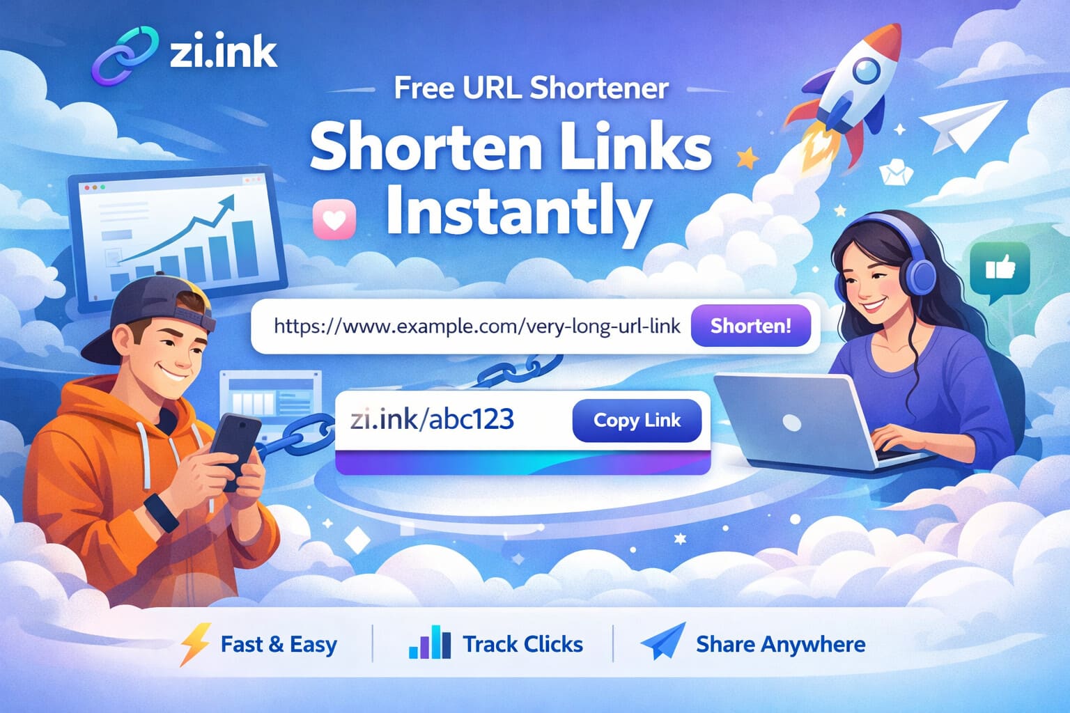 zi.ink/your-campaign - Click "Shorten URL" to generate your short link instantly